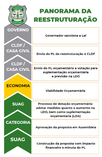 Informamos à categoria que os trâmites estão ocorrendo conforme o esperado e que este sindicato tem se empenhado incessantemente para que a reestruturação seja aprovada dentro da realidade e dos prazos apresentados à categoria.