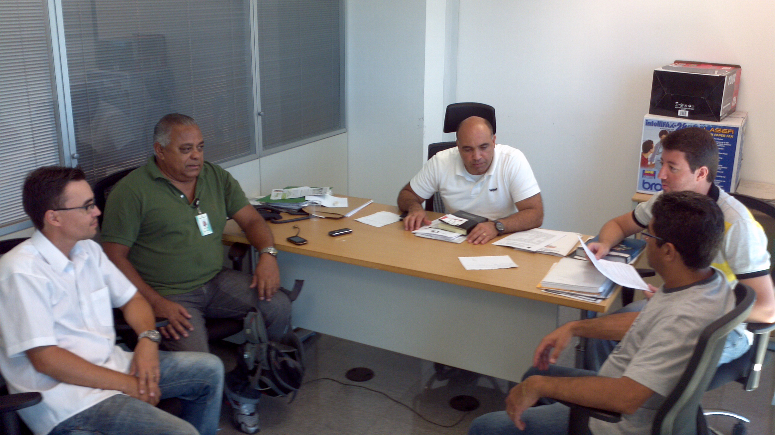 Hoje, dia 01 de março de 2012, às 09:30, reuniram-se com o Excelentíssimo Senhor Secretário de Estado e Deputado Distrital Wellington Luiz, representantes do SIND-ATRS/DF, para tratar da confecção da Identidade Funcional, Reestruturação da Carreira, nomeação dos aprovados e prorrogação do Concurso Público realizado pela SEJUS em 2010 e liberação do Porte de Arma aos Agentes de Segurança do Sistema Socioeducativo do DF perante a Superintendência da Polícia Federal e na Secretaria de Segurança Pública do DF.
